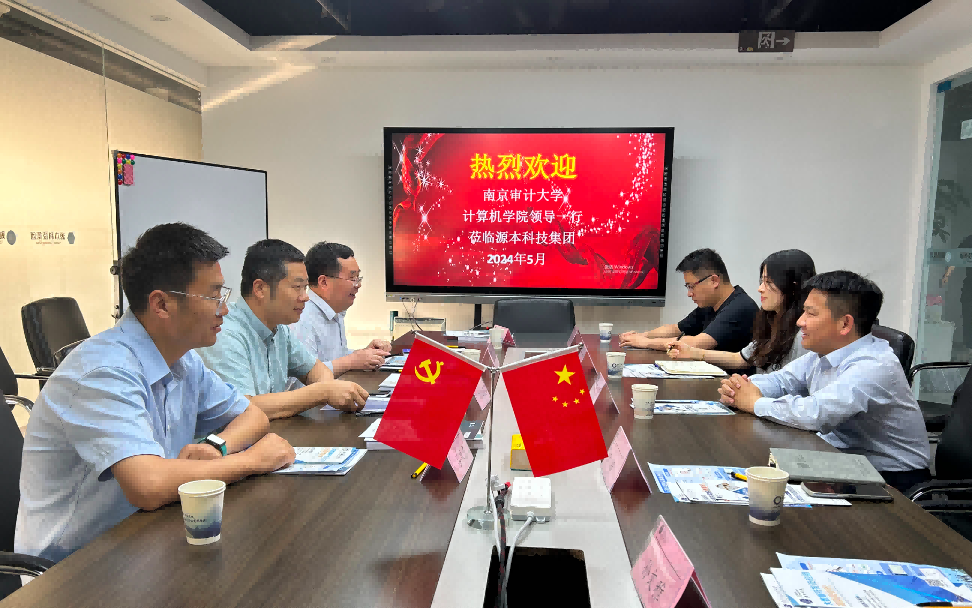 为贯彻落实党中央、国务院关于高校毕业生就业工作的决策部署,全力促进毕业生高质量就业和产教融合开展,2024年5月15日下午,南京审计大学计算机学院副院长郭红建带领计算机系主任崔应留、信管系主任姚兴山以及吕从东老师来到江苏球盟会(中国)科技集团召开“访企拓岗产教融合”专项行动。